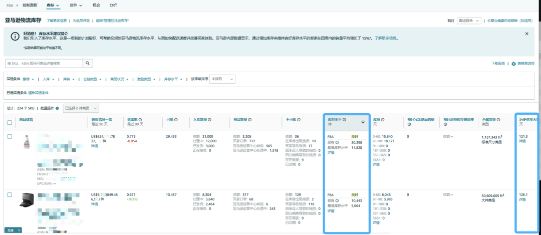 据了解,亚马逊新上线两个指标包括【库存水平指标】和【历史供货天数】。